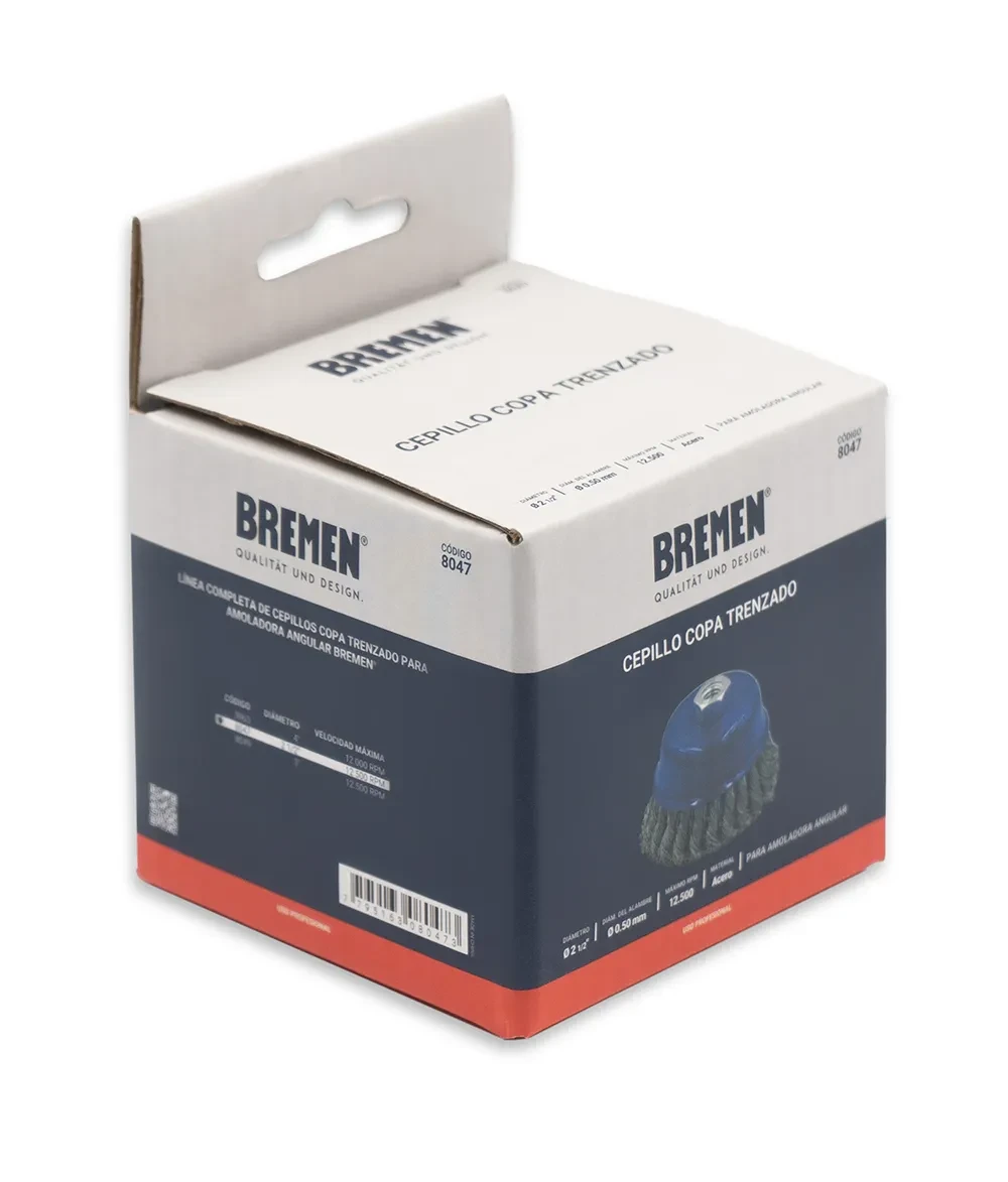 El Cepillo Copa Trenzado BREMEN permite realizar trabajos de remoción y limpieza en alta velocidad, gracias a sus alambres de acero duradero. Posee gran resistencia al desgaste.
