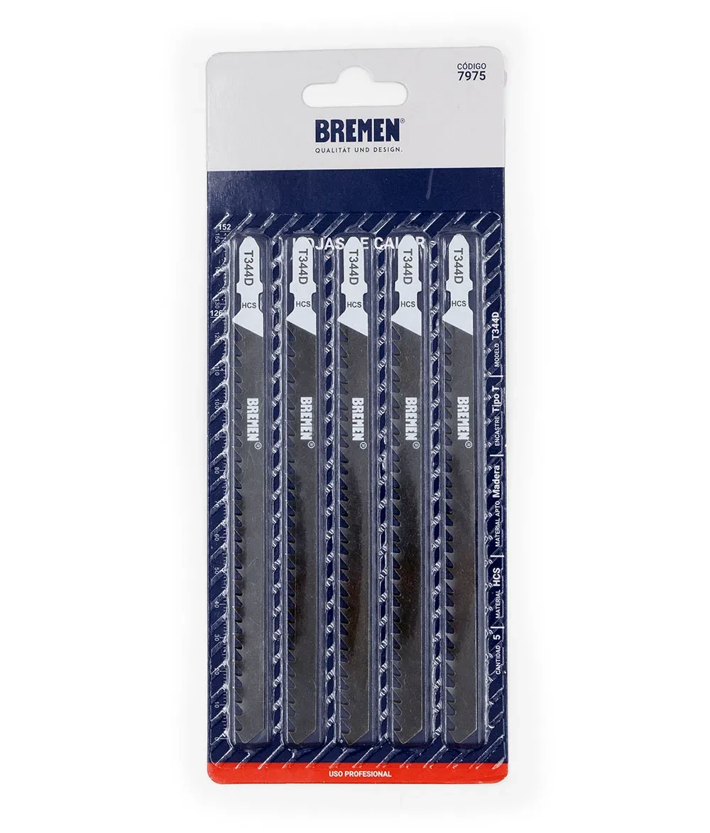 Las Hojas de Calar para Madera BREMEN son ideales para cortar madera de manera rápida y precisa. Compatibles con todas las sierras de calar con encastre en T. Su material de acero con alto contenido de carbono corta madera, plásticos y materiales no abrasivos.