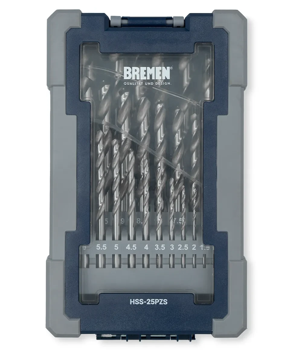 Los Juegos de mechas de Acero Rápido rectificado (HSS 4341) para uso profesional, cuentan con filos destalonados y puntas Split Point en todas las medidas, para mayor precisión y velocidad de corte.